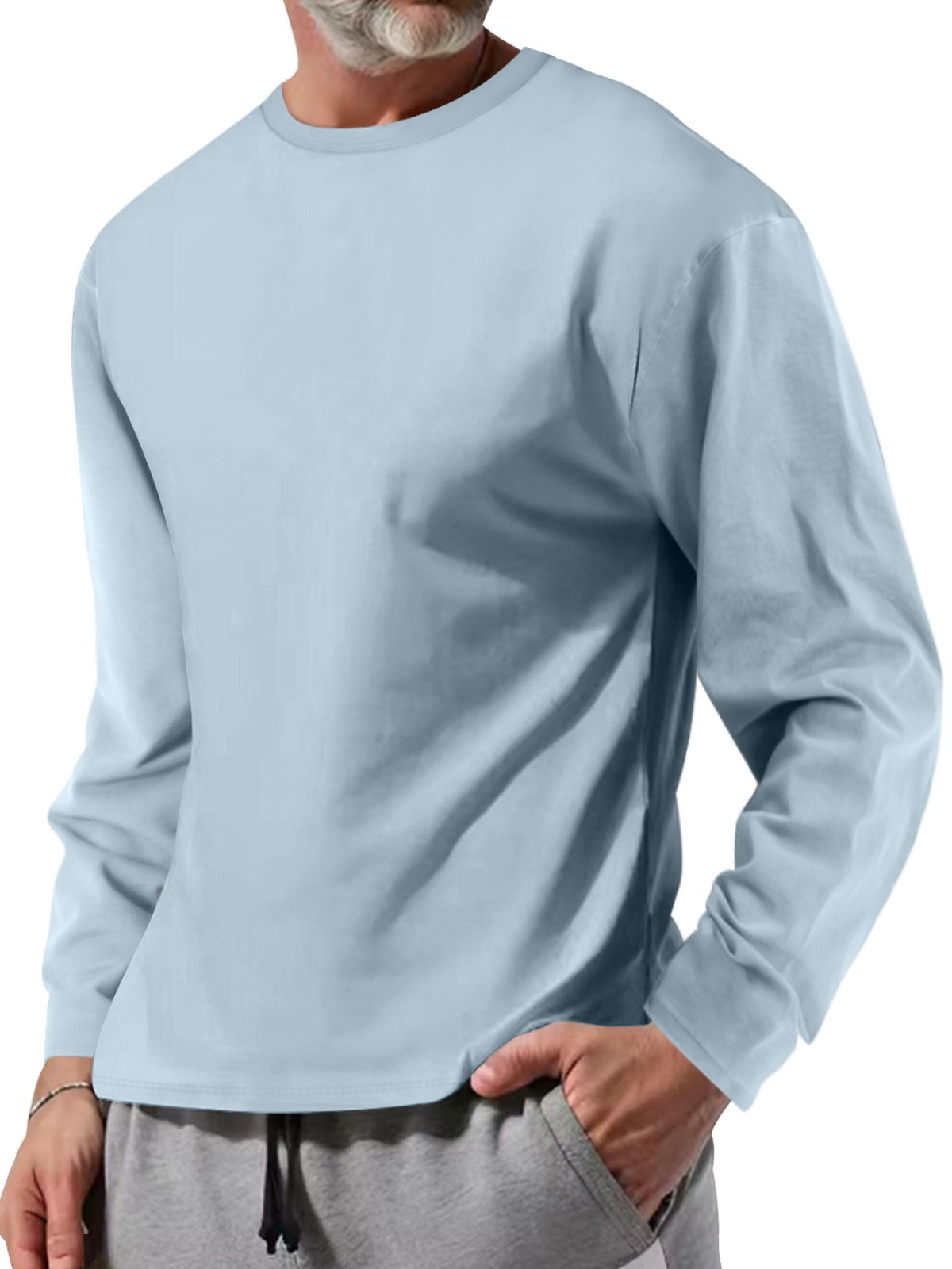 Men's pure cotton round neck casual and comfortable solid color long-sleeved T-shirt